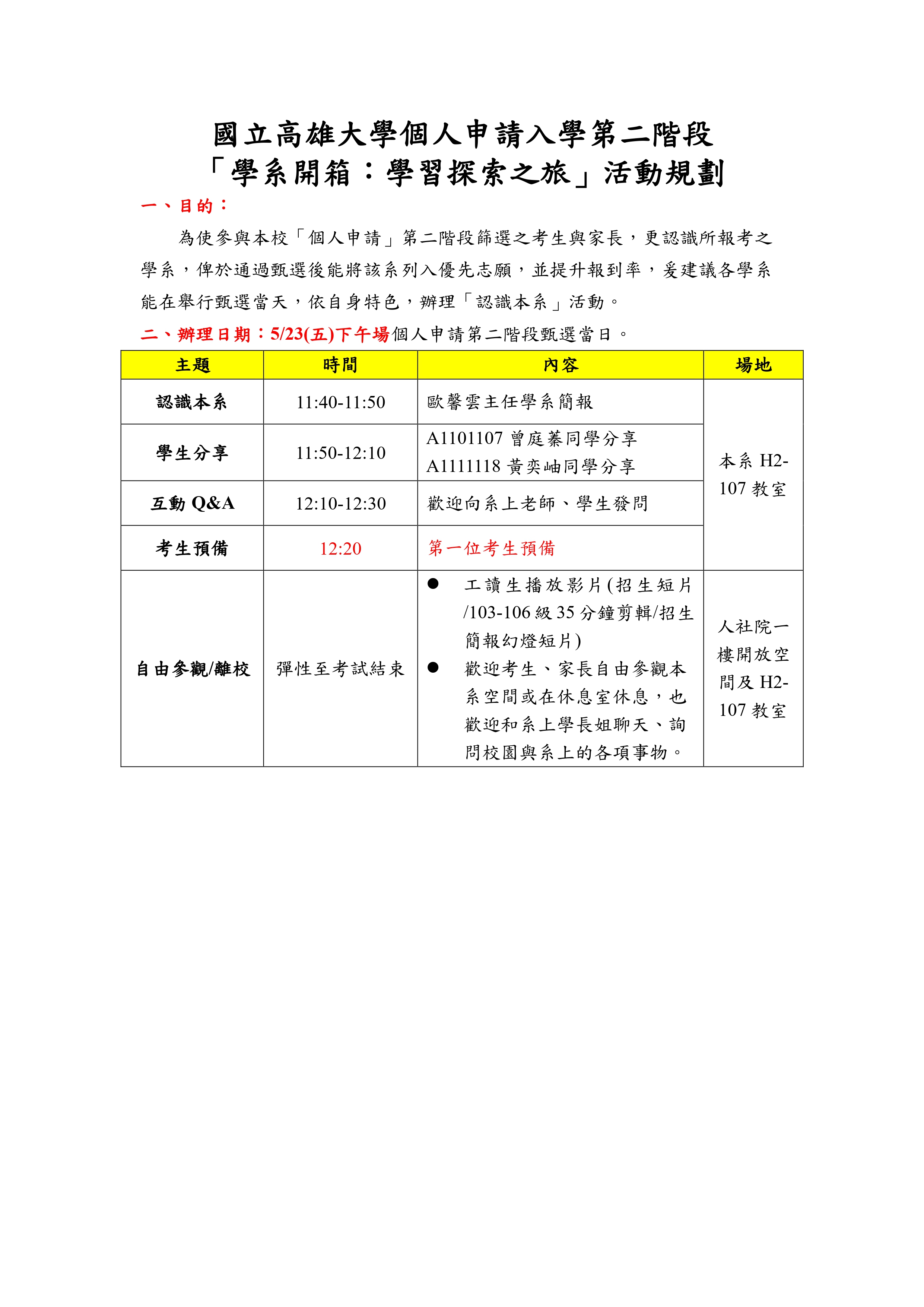 【正式版】國立高雄大學個人申請入學第二階段「學系開箱:學習探索之旅」.pdf
